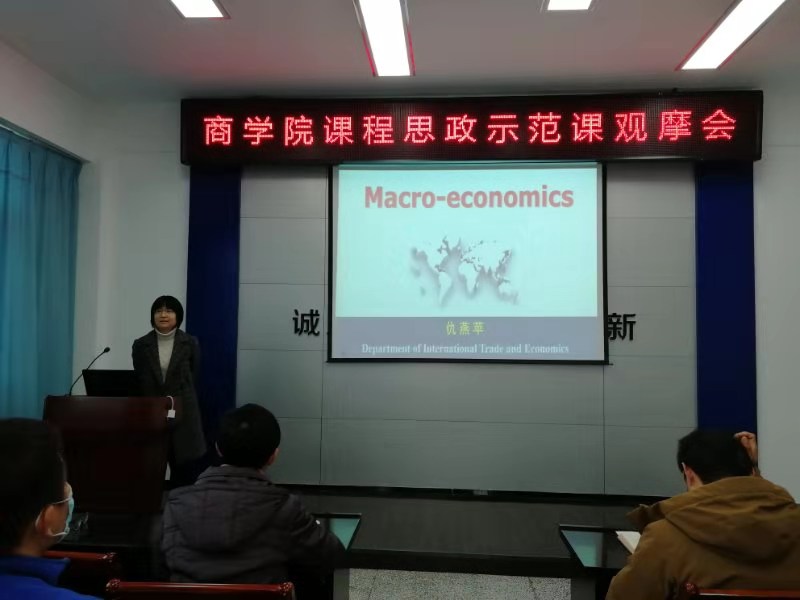 国际经济与贸易系仇燕苹老师和财务管理系蔡阳老师,精心设计、认真准备,从各自专业及课程特点出发,充分挖掘本课程蕴含的思政元素和承载的育人功能,给大家带来了两堂精彩的示范课,赢得老师们的称赞和热烈的掌声。仇燕苹老师全英文讲授宏观经济学,在讲授如何评价GDP知识点时,巧妙地融入绿色发展、人类命运共同体等思政元素;蔡阳老师讲授成本管理关于报表制作时,不经意间融入社会主义核心价值观的内容。两位教师对于课程思政的实施也有自己独到理解,能够适度挖掘课程思政元素,突出了课程的思政魅力,充分实现了“知识传授”和“价值引领”的有机统一。