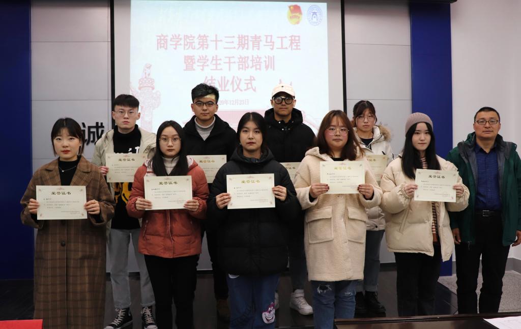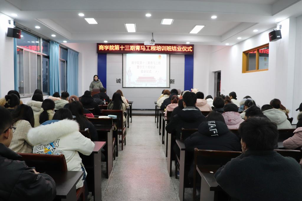 2020年12月23日下午5时,商学院第十三期青马工程培训班结业仪式在苍梧校区文渊楼357举行。商学院党委副书记王智金、团委副书记程雪出席仪式,第十三期青马工程全体学员参加。