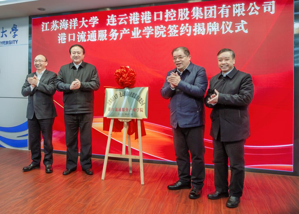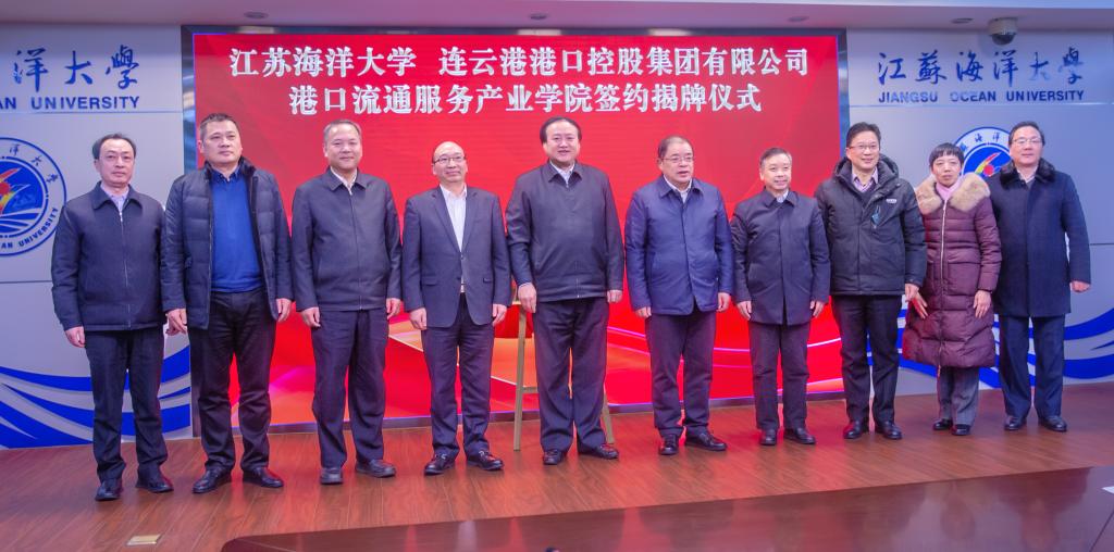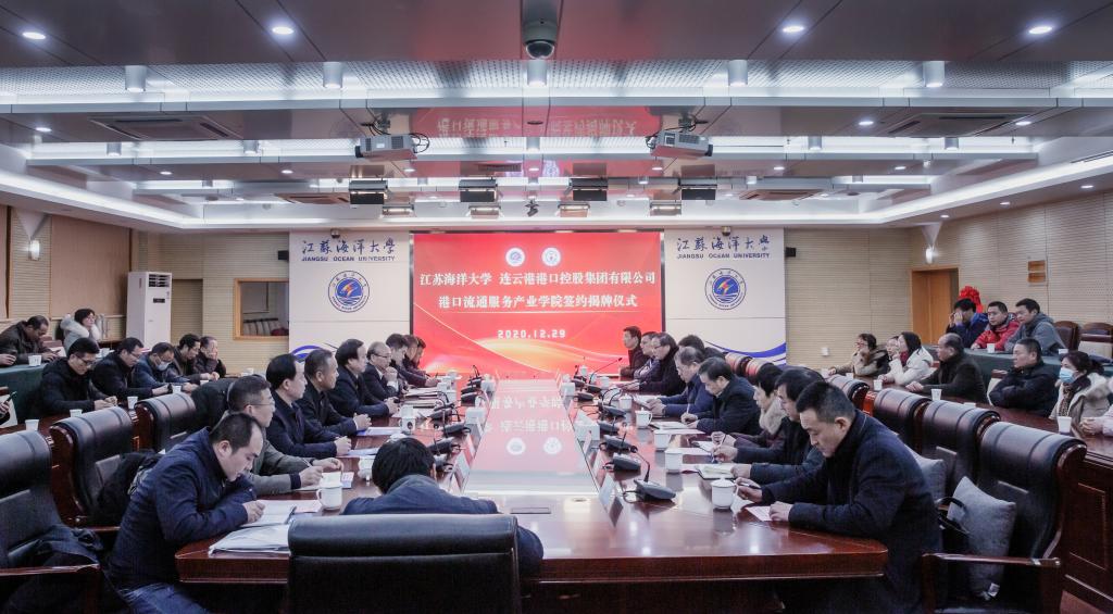 12月29日,江苏海洋大学与连云港港口控股集团有限公司共建的港口流通服务产业学院签约揭牌仪式在江苏海洋大学学术会议中心东海厅举行。连云港市副市长徐家保出席本次会议,我校党委书记王自力、副校长许兴友、连云港港口控股集团有限公司党委书记董事长丁锐、常务副总裁李春宏、港口控股集团有关职能部门和学校教务处、商学院有关领导、商学院部分教师参加了本次会议,会议由商学院院长宣昌勇主持。