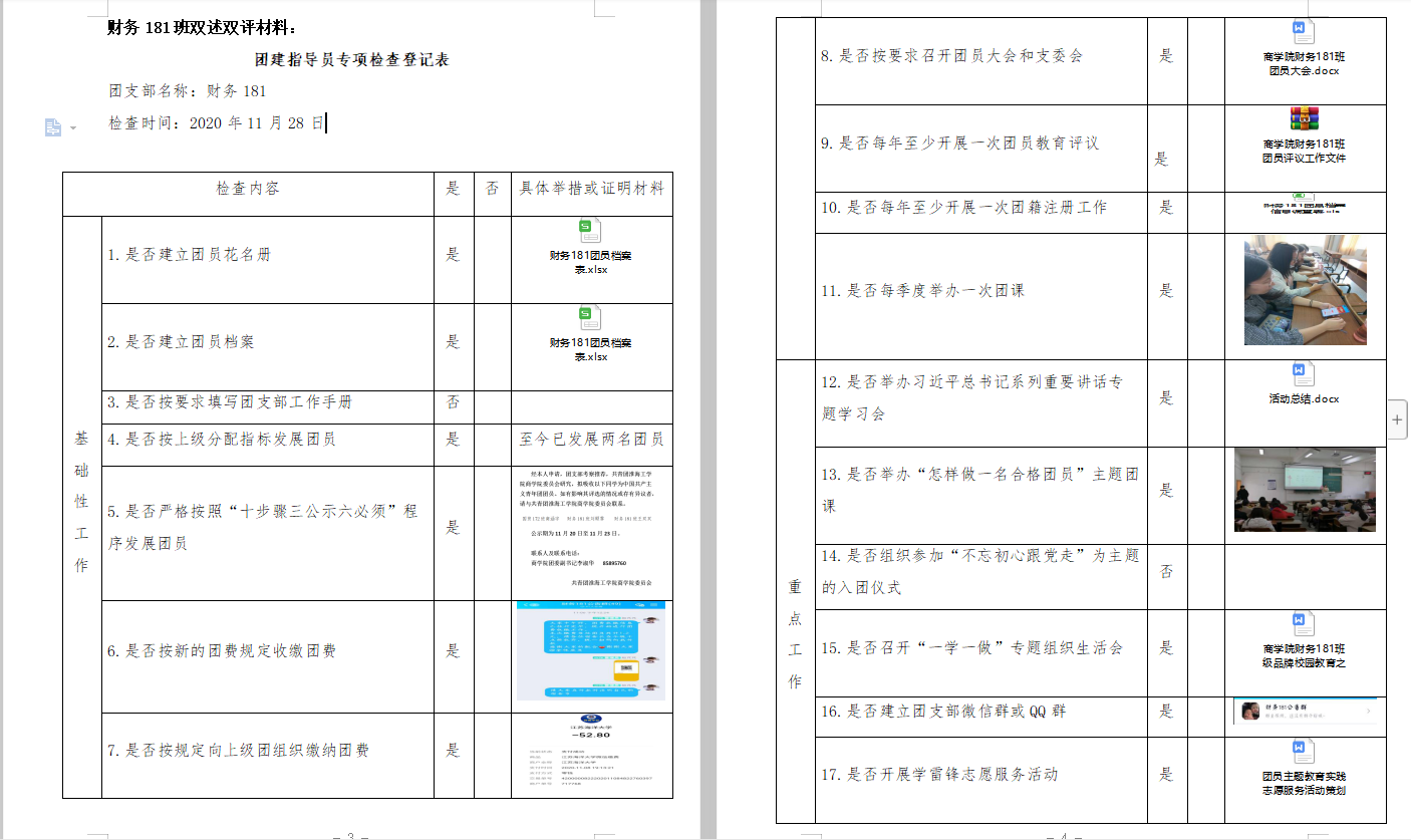 本次活动分为三个阶段,第一阶段11月27日至11月29日完成述职报告;第二阶段,12月3日前召开团支部书记述学述职报告会;第三阶段,12月3日各团支部完成双述双评"工作。通知下达后,各团支部书记对照“一学一做”教育实践要求和团支部书记职责清单认真撰写述学述职报告,根据自身工作状况认真填写《团建指导员专项检查登记表》。同时各团支部开展团支书评议,组织团员以无记名的形式填写《团支部书记评议表》对团支书进行评议,由组宣委员组织计票,填写《团支部书记评议情况统计表》。办公室共回收纸质稿件《团支部书记评议表》1109份、《团支部书记评议表统计表》34份。