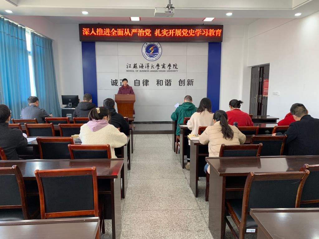 第二阶段进行了党史学习教育动员,杨天华书记带领大家学习了习近平总书记2月20日在党史学习教育动员大会上的讲话精神,传达了校党委3月16日召开的党史学习教育动员大会精神,认真学习了校党委王自力书记在党史学习教育动员大会上的讲话,并就商学院党史学习教育做了部署。