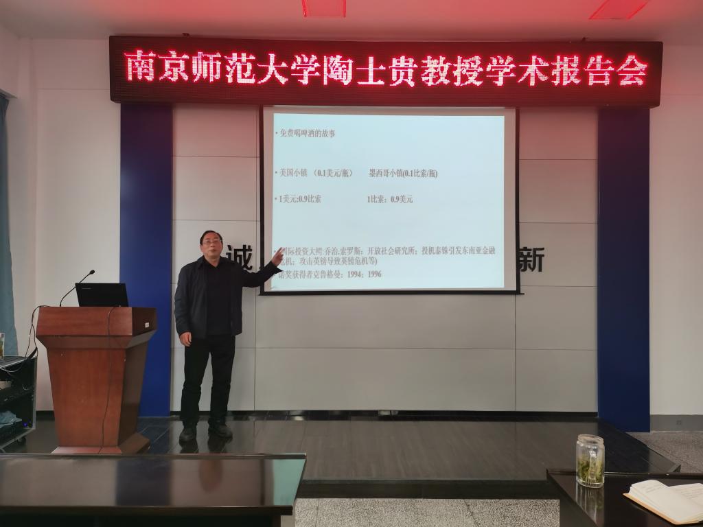 2021年4月2日下午,应商学院邀请,南京师范大学商学院博士生导师陶士贵教授在商学院357会议室作了题为“后疫情时代国际经济金融形势的变化及应对”的学术报告。报告会由商学院院长宣昌勇教授主持。商学院部分教师及国际商务2020级硕士研究生60余人聆听学术报告。