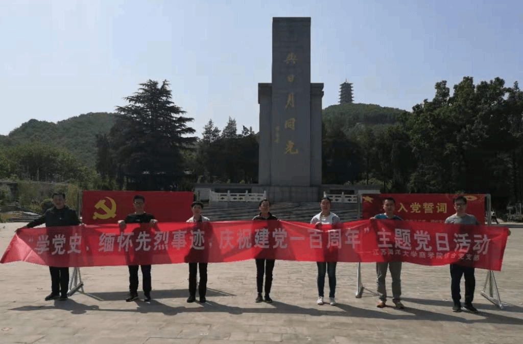 习近平总书记在党史学习教育动员大会上强调:“坚持集中学习和自主学习相结合,坚持规定动作和自选动作相结合,开展特色鲜明、形式多样的学习教育。”为切实增强党史学习教育的吸引力、感召力,用好身边的教育资源。2021年5月9日,江苏海洋大学商学院综合党支部组织全部党员走进爱国主义教育基地—灌云县烈士陵园参观学习,开展主题党日活动,学习党的历史,缅怀革命先烈。
