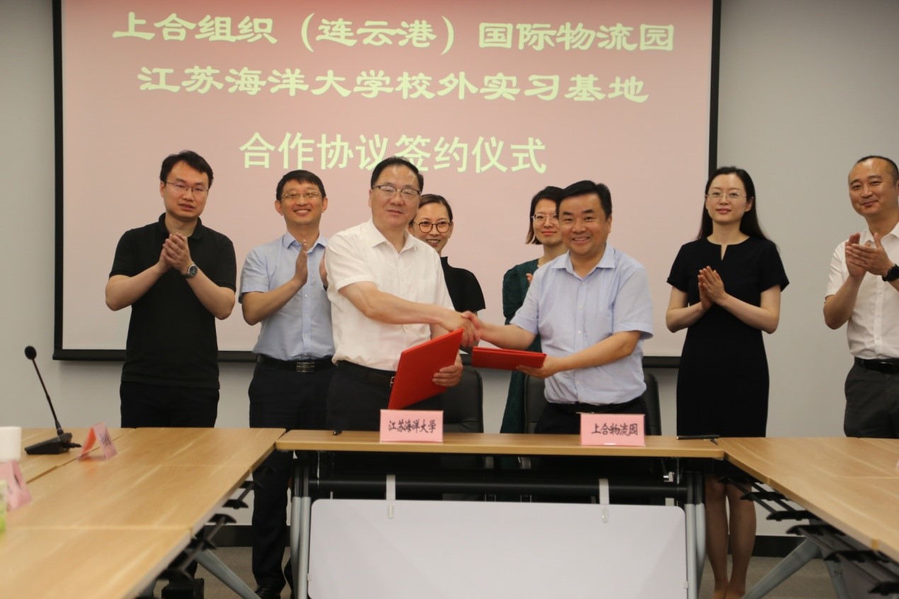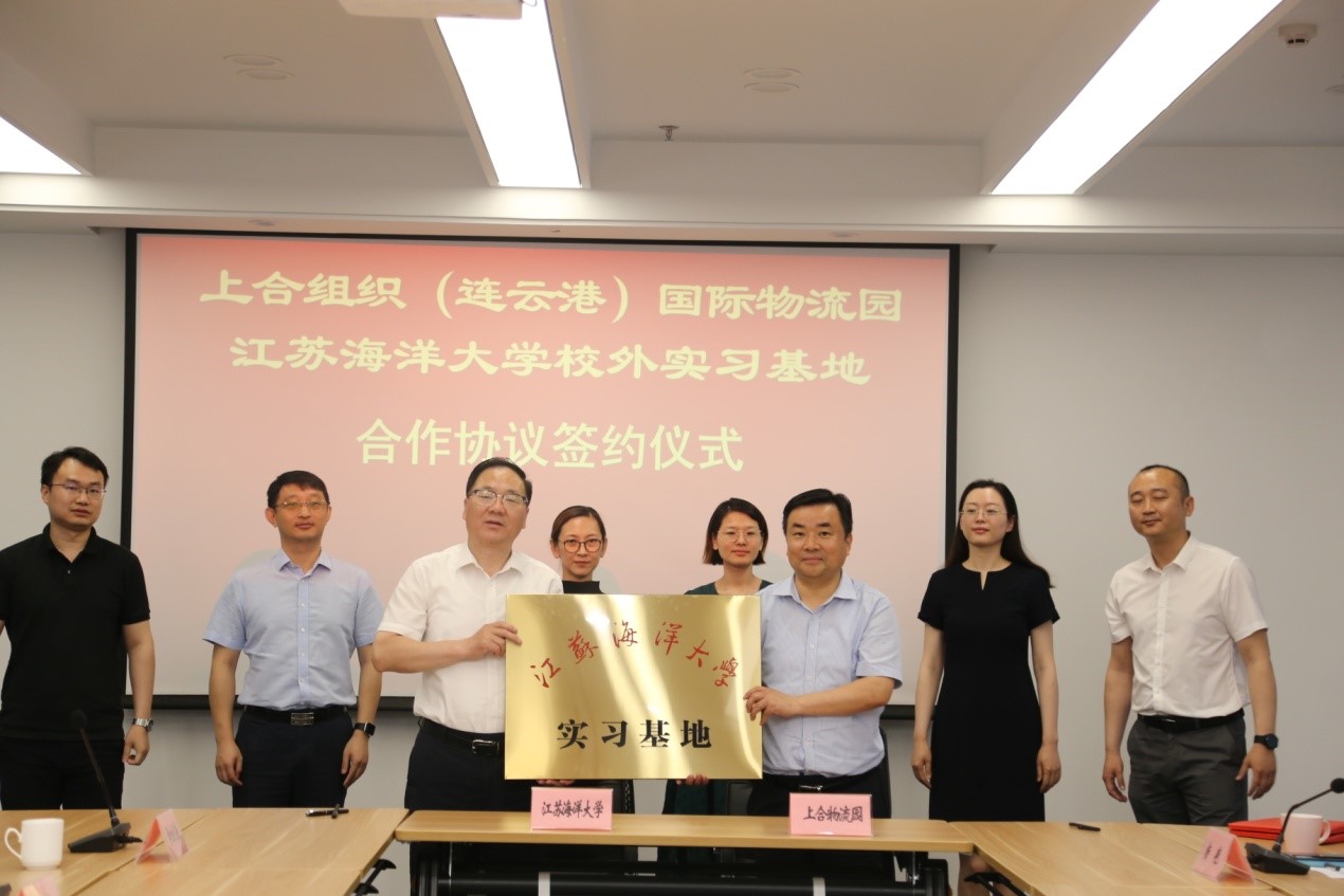 2021年6月11日上午,在团市委和连云区的大力支持下,在2021上合组织国际圆桌会议举办前夕,江苏海洋大学商学院与上合组织(连云港)国际物流园签订本科生校外实习基地并授牌。连云区委常委、连云开发区党工委书记、上合物流园管委会常务副主任苏军,连云开发区管委会主任、上合物流园管委会副主任周洋、团市委青年发展部部长杨阁,江苏海洋大学商学院院长宣昌勇、国际交流与合作处陈倩副处长等同志出席了签约和揭牌仪式。