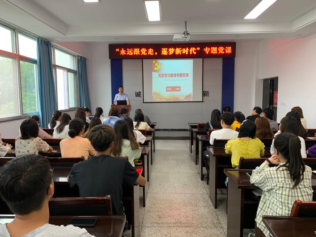 2021年6月29日下午,为了隆重庆祝中国共产党成立100周年,激励广大党员坚定理想信念、牢记责任使命,商学院党委在文渊北楼357会议室进行新党员入党宣誓暨党史学习教育专题党课,商学院党委书记万金店、副书记王智金、全体学生党支部书记及2021年新发展党员参加。大会由王智金副书记主持。