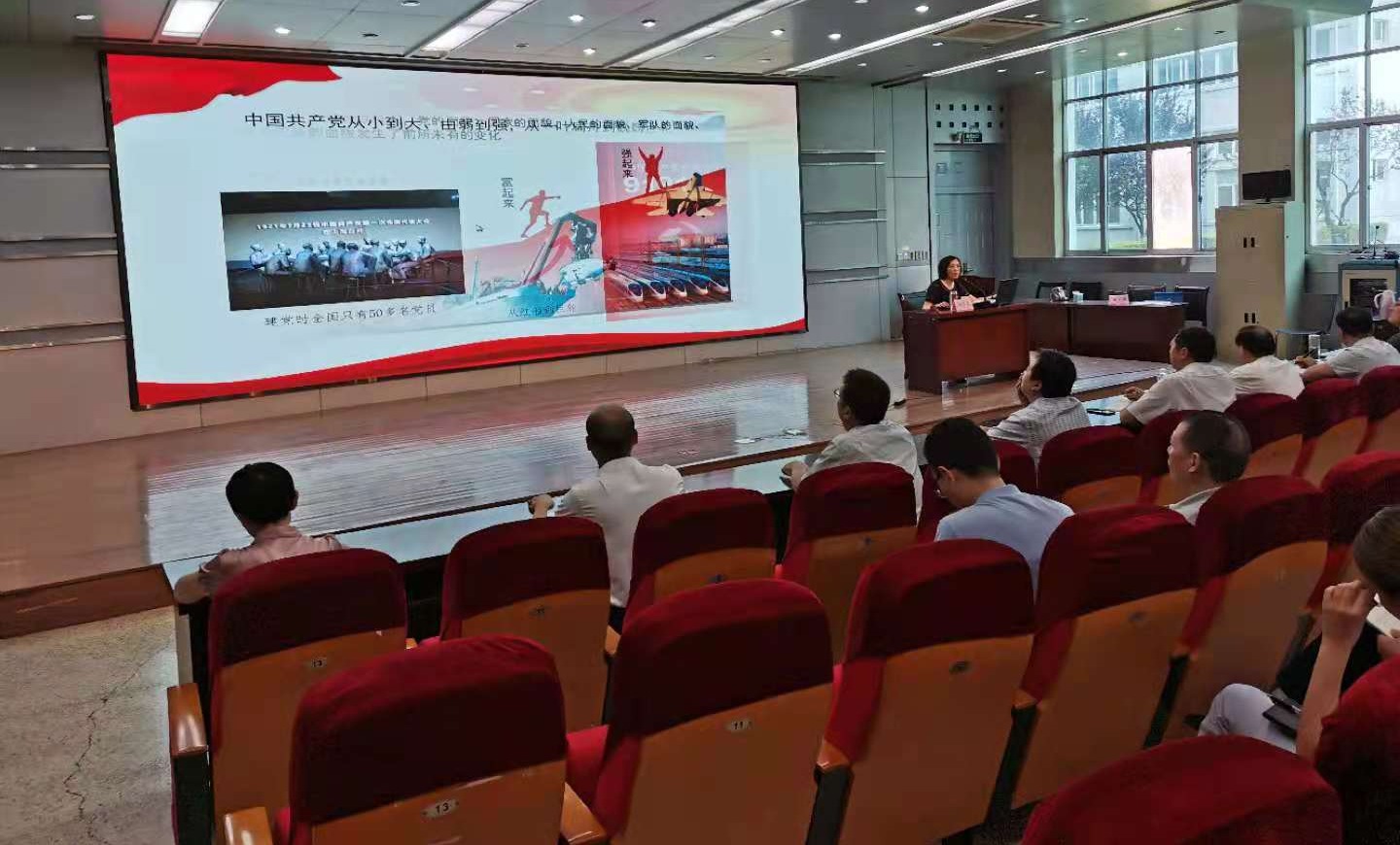 报告会上,杨雪英教授从“开展党史学习教育的重大意义、中国共产党一百年辉煌史的历史脉络、中国共产党百年成功的历史密码”三个方面,紧紧围绕百年党史,全面解读了中国共产党成立以来践行初心使命,带领中国人民实现站起来、富起来、强起来的辉煌奋斗历程,再现了共产党人的革命精神和优良传统,深刻阐释了在全党开展党史学习教育的重大意义、重点任务和工作要求以及如何从百年党史中汲取四个力量:思想的力量、信仰的力量、道德的力量、实践的力量。