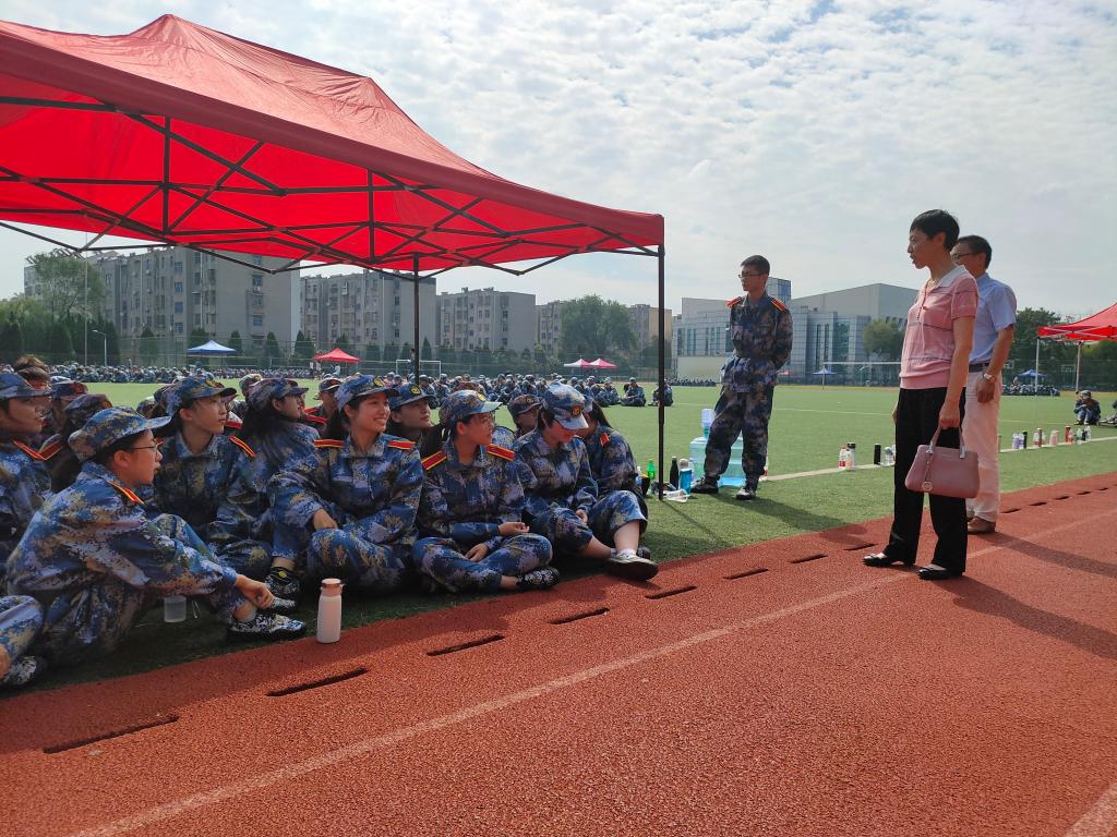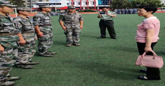 杨书记对军训团教官们的辛勤付出表示了感谢,希望同学们借助教官们提供的专业化军事训练,强健体魄、磨炼品格,上好“开学第一课”。她仔细询问了商学院学生的军训情况,并对同学们吃苦耐劳的精神给予表扬。她叮嘱商学院军训指导员周智超老师要关心学生的身体健康,保障后勤服务,对有既往病史的学生保持跟踪关注。训练场上,同学们在军训教官的带领下意气风发,迈着整齐划一的步伐,喊着响亮的口号。军训不只是为了加强大学生国防教育,进一步提高他们的国防意识,更能磨练意志和品格,帮助同学们以更好的状态融入大学生活。