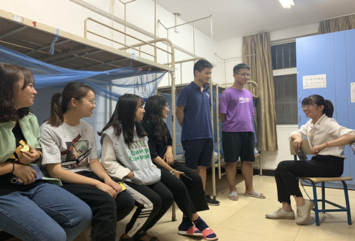 9月30日晚,商学院在通灌校区举办了第一场2019级“商院有约”晚谈活动,辅导员刘锦芳老师利用夜间值班的时间,在辅导员值班室与近10名同学展开了谈心谈话。