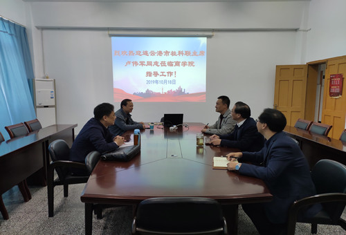 2019年10月18日上午,连云港市哲学社会科学界联合会主席卢伟军来商学院调研并指导工作,商学院院长宣昌勇、副院长兼党委副书记孙军和副院长张瑞龙在商学院会议室热情接待了卢伟军主席一行。