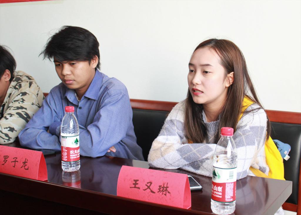省政府全额奖学金获得者、来自老挝的李诺同学代表留学生们发言,他对国际学院、商学院各位老师的辛勤付出表达感谢,他表示对中华文化有很浓厚的兴趣,希望能认真学习汉语,提升国贸专业知识技能,结识中国朋友,愉快的度过留学生活。商学院留学生辅导员、班主任谭鑫,学生代表国贸172班徐达先后发言。