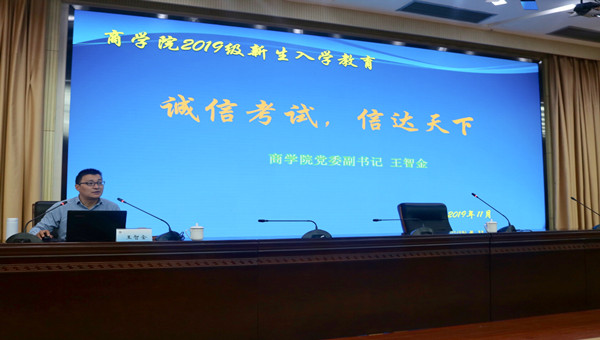 2019年11月13日,商学院在江苏海洋大学会议中心组织了“诚信考试 信达天下”学风建设教育宣讲会,宣讲会由商学院党委副书记王智金主讲。