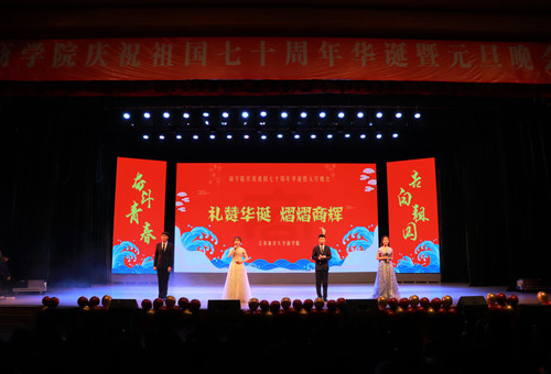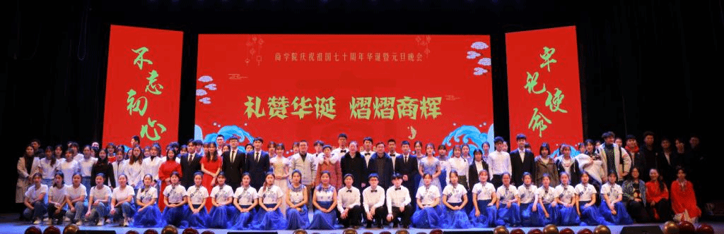 硕果累累辞旧岁,礼赞华诞迎新年。12月30日晚,商学院“礼赞华诞,熠熠商辉”庆祝祖国七十周年华诞暨元旦晚会于苍梧校区大礼堂正式举办,商学院党委书记杨天华,院长宣昌勇,党委副书记王智金,副院长张瑞龙,全体辅导员及商学院学子欢聚一堂,共同迎接新年的到来。