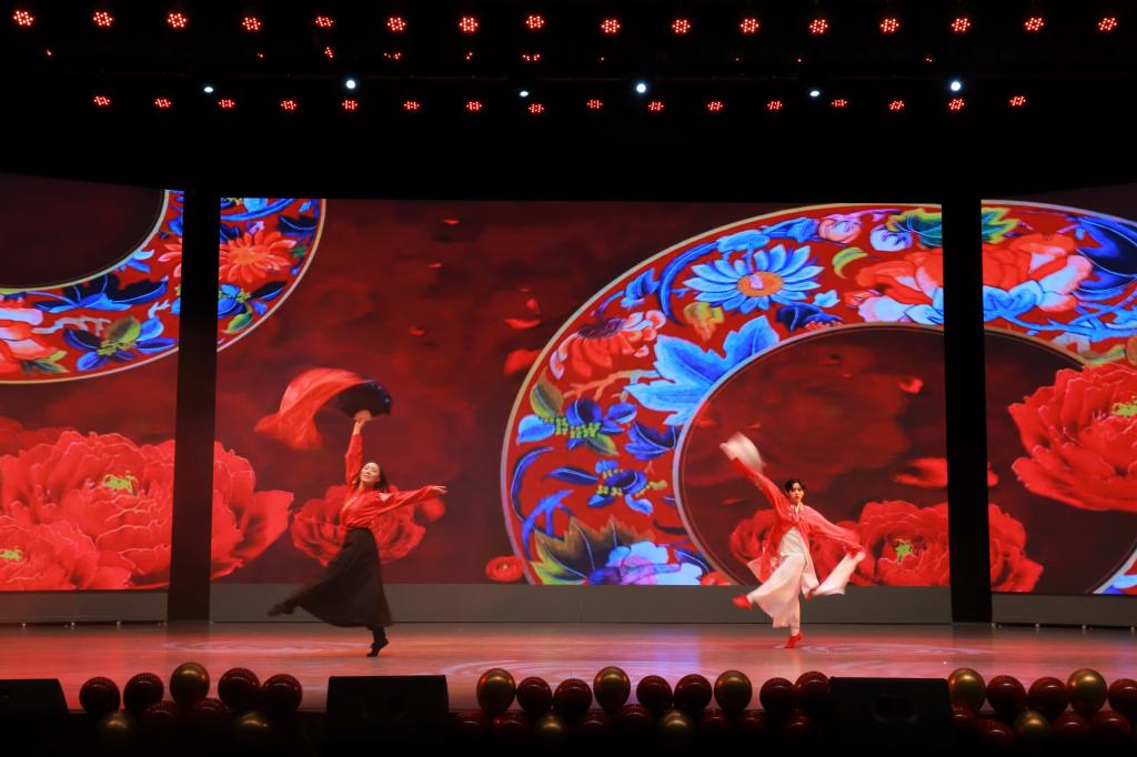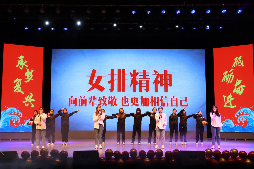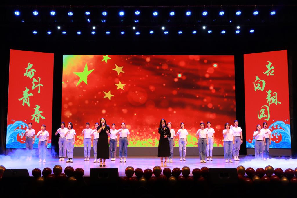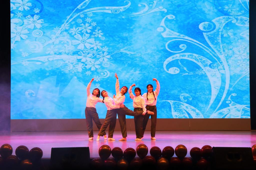 晚会的最后一个篇章——舞动红色中国梦在民舞《红雪冬青》中展开,舞者们一袭水袖丹衣,用中国风的表演将现场观众浸润到江南烟雨的世界里,在水墨风情中诉说婉约爱恋。走秀《时代记忆》为晚会再续火力,古典的婉约与现代的热情碰撞,为观众们献上一台视听盛宴。朗诵《家国情》沉稳大气,颂的是一曲繁荣昌盛,品的是一段家国情深。最后,海棠之声合唱团带来歌曲《走向复兴》,慷慨激昂的歌声拨动着同学们的心弦,一幅中华民族伟大复兴的辉煌画卷正在同学们眼前缓缓展开。