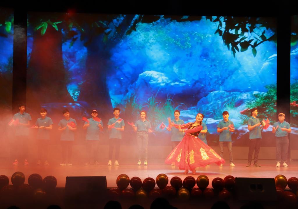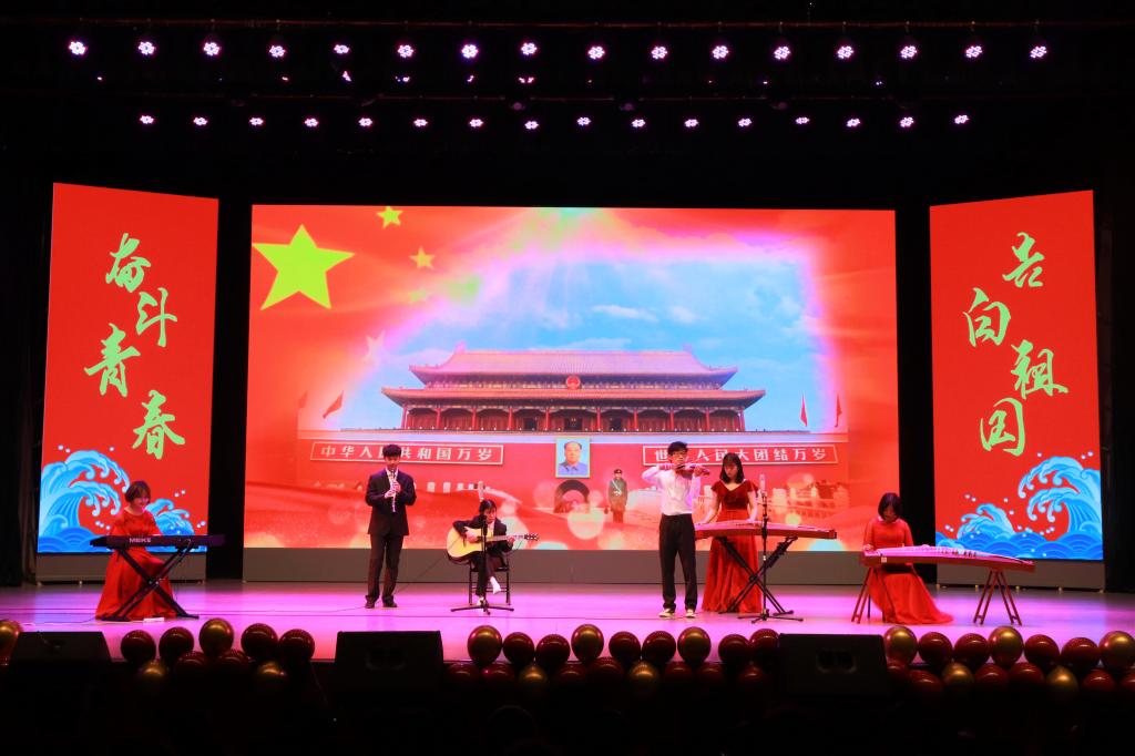 一曲《星辰大海》拉开了本场晚会的序幕,舞台灯光映照着一张张青春洋溢的脸庞,映照着独属于江海大的蔚蓝。晚会共分为三个篇章,第一篇章——谱写活力青春曲,俞心悦、刘宁平等同学带来舞蹈《绒花》,用曼妙的舞姿编织了一场绒花纷飞的梦境。《我爱你,中国》小合唱将深情厚谊融入歌声,充分表达了商院学子对祖国母亲的热忱与敬爱。《我和我的祖国》乐器演奏将小提琴的优雅、古筝的空灵、单簧管的清脆、吉他的细腻与钢琴的浑厚完美结合,琴瑟和鸣谱写出一曲爱国华章。