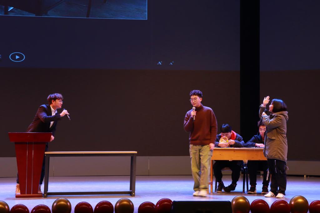 演出中间,商学院院长宣昌勇发表新年贺词,他说2019年对商学院而言是充满收获的年份,国际商务第一届研究生入学标志着商学院进入人才培养的新时代,同时,首次成建制招收培养留学生也标志着商学院正式开启了国际化的新阶段。在这辞旧迎新之际,宣院长希望全体商学院学子不忘初心,为中华民族伟大复兴贡献青春力量。