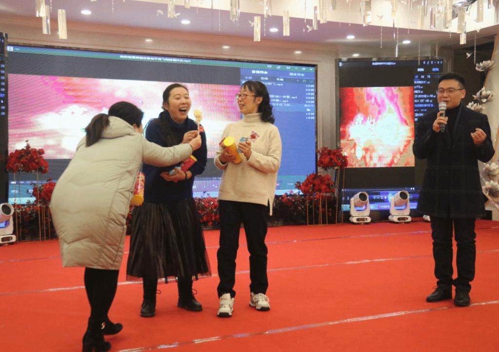 商学院教师围绕中华人民共和国成立七十周年、学校更名、“不忘初心、牢记使命”主题教育、工商管理类专业综合评估、学院搬迁等2019年各种大事记,编排设计了相应的精彩节目,一个一个接地气的演出感染了全体教师。学院全体领导共同演唱了歌曲《我和我的祖国》,表达了带领商学院全体师生坚守育人初心,践行大学使命的共同诺言。在观看老照片展示"时间都去哪儿了?"节目时,老师们全神贯注,当看着一个个青春的面庞如今苍老,满头的乌发如今斑驳,不少教师心情澎湃,时间都去哪儿了?时间都用在认真教学,努力科研上了,时间都用在一届届毕业生顺利毕业走上社会中了。人虽然老去,但商学院教师们热爱教育的初心不会变更!