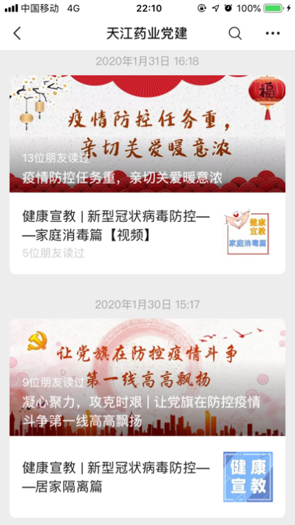顾洋洋协助“天江药业党建”微信公众号发布推文