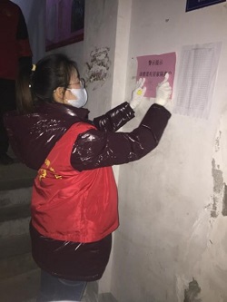 协助社区党组织张贴疫情防控告示