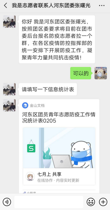 “回家后我一直在超市兼职,疫情暴发时工期刚刚结束,我便从公众号上报名了志愿者。”胡慧琳最开始负责线上志愿服务,通过防疫相关的文章朗读、视频录制、照片拍摄、线上采访等,加强防疫宣传力度。在确认线上线下志愿工作互不冲突的情况下,她又主动申请参加社区线下志愿防疫工作。