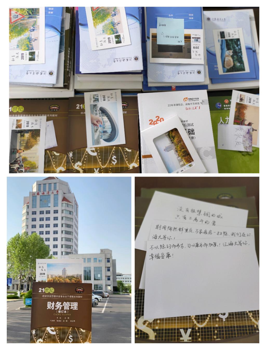 对于同学们反映没有课本上课困难等问题,支部成员们积极行动,将湖北同学所需课本统一整理打包,放入写好祝福的海大明信片,一同寄送出去。