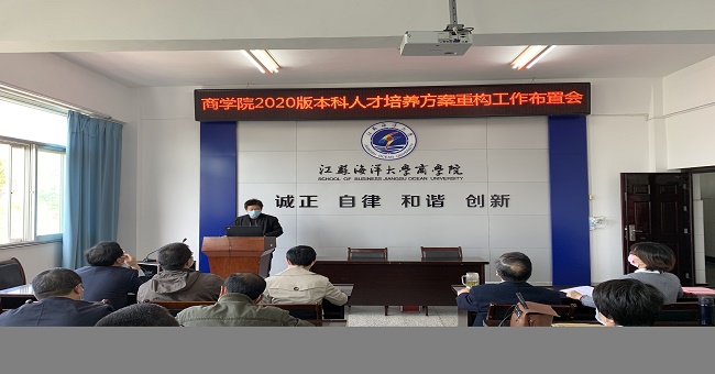 为切实提升商学院本科人才培养质量,贯彻落实《江苏海洋大学关于进一步加强本科教育的若干意见》,商学院党政领导高度重视商学院2020版本科人才培养方案重构工作。4月27日,组织院领导、专业负责人、正副系主任、骨干教师代表参加学校《召开2020版本科人才培养方案制定原则意见解读会议》。为了进一步推进商学院本科人才培养方案制定工作进展,5月6日下午商学院召开2020版本科人才培养方案重构工作布置会,商学院党政领导班子成员、全体教职工参加会议。