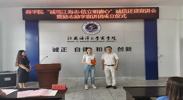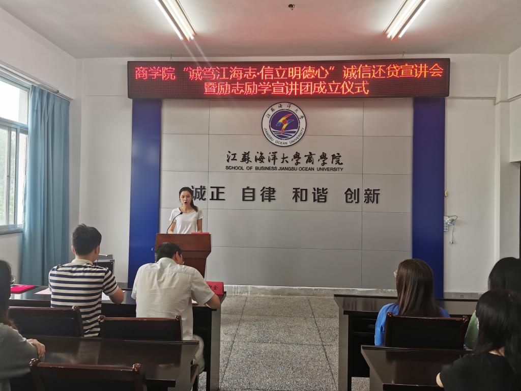 (三)举行商学院“诚笃江海志·信立明德心”诚信还贷宣讲会暨励志励学宣讲团成立仪式