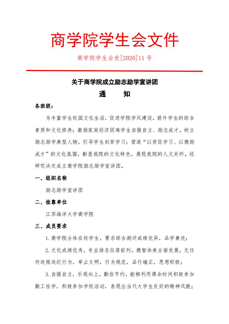 为丰富学生校园文化生活,促进学院学风建设,提升学生的综合素质和文化修养;激励家庭经济困难学生自强自立、励志成才,树立励志励学典型人物,引导学生刻苦学习;营造“以资促学习、以德助成才”的文化氛围,彰显我院的文化特色,展现我院的人文关怀。经研究决定于6月16日成立商学院励志励学宣讲团,共计15人。召开成立仪式,并于6月30日首次推送成员风采及优秀学习笔记分享展示,依托新媒体平台,大力开展诚信教育宣传。