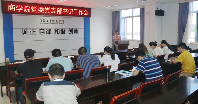 9月12日,商学院党委召开党支部书记会议,进行了政治学习,布置近期工作,会议由学院党委书记杨天华主持,党委副书记王智金、党政办主任兰巍,各党支部书记参加会议。