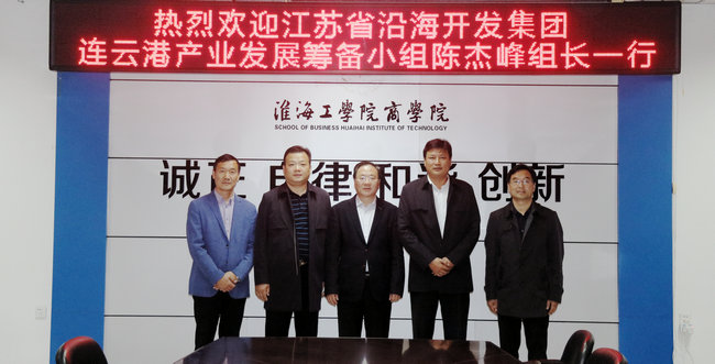 2018年10月15日下午,江苏省沿海开发集团连云港产业发展筹备小组组长陈杰峰一行来商学院调研并与商学院洽谈产学研合作事宜。江苏省沿海开发集团是省级沿海开发主力军和省级沿海开发投融资重要平台,主要从事沿海滩涂保护与围垦、发展现代农业和开发投资等业务。截至2017年末,集团总资产124亿元,净资产96亿元。连云港产业发展筹备小组主要负责江苏沿海开发集团在连云港市的项目规划与开发。陈杰峰组长一行先后参观了我校江苏省海洋经济与文化展示中心和海洋学院实验中心,最后与商学院相关领导和老师进行了座谈,就江苏省沿海开发集团在连云港产业发展的相关议题进行了深入的交流。陈杰峰组长一行表示将与商学院建立紧密的合作关系,希望商学院为江苏省沿海开发提供咨询服务和智力支撑。