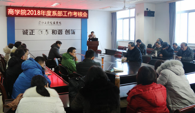1月9日下午,商学院在教学主楼606会议室召开全院教职工大会,完成了2018年度系部工作考评工作。