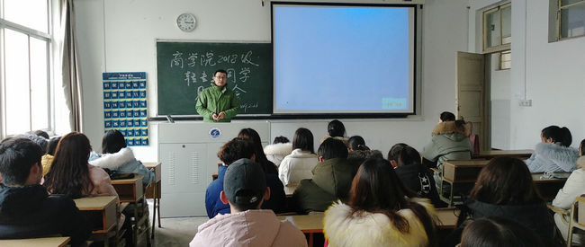 2月20日下午三时,商学院2018级转专业学生见面会在通灌校区TM204教室顺利举行。商学院党委副书记王智金,辅导员程雪出席,新转入的4 0位同学参加了见面会。