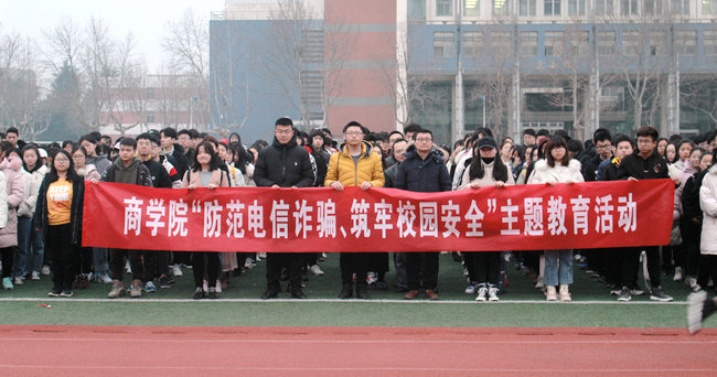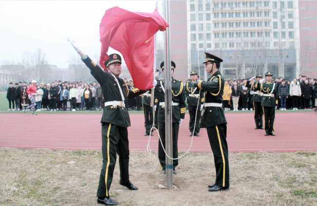 3月5日,商学院“立足新高度,奋斗新征程,助力海大梦”主题升旗仪式暨“防范电信诈骗,筑牢校园安全”主题教育活动在通灌校区操场举行。商学院党委副书记王智金,全体辅导员以及2018级全体学生参加了升旗仪式。