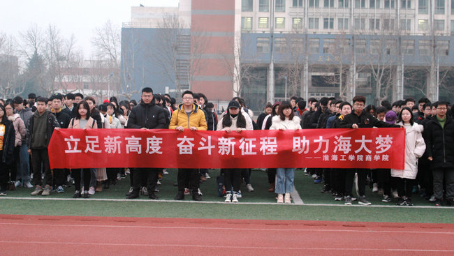 升旗仪式后,商学院举行了“立足新高度,奋斗新征程,助力海大梦”主题教育活动。首先由管理182尹彤同学发言,她说2019年是落实学校第四次党代会精神的开局之年,是大学更名的决战之年,也是连云港创建全国文明城市的关键之年。作为大一同学,要树立明确的目标,努力学习,积极参与到学校创大和城市创文活动中去,提高综合素质,凝心聚力,在学校创大和城市创文的关键时期贡献自己的力量。她说通灌校区居住和学习的全部都是大一的新生,作为大学最新鲜的血液,理应展现出活力和素质,让通灌校区洋溢着青春的气息。她倡议大家要从小事做起,从我做起,遵守教学教学规定,遵守宿舍管理规定,以实际行动践行社会主义核心价值观。