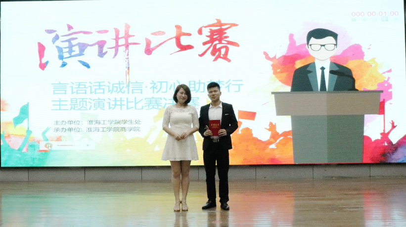 为营造良好的诚信教育氛围,打造校园诚信典范,践行资助育人责任,5月23日晚,由淮海工学院学生处主办、商学院承办的“言语话诚信·初心助梦行”主题演讲比赛决赛在艺术楼报告厅举行。出席本次比赛的嘉宾有港城资深媒体人、连云港报业传媒集团全媒体采访中心二部主任杨锐冰,学生工作处副处长张萍,校团委副书记朱小明,商学院党委副书记、副院长王智金以及学生工作处学生资助管理中心吴冰。