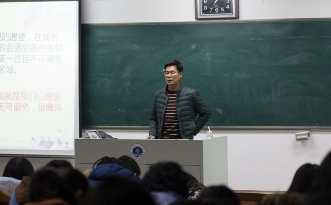 为积极响应十九大“建设健康中国,保障全民健康”的号召,提高大学生心理健康知识水平,2017年11月23日晚商学院于通灌校区举行了以“关照自我,实现成长”为主题的新生心理健康教育讲座,此次讲座由心理中心李宗耀老师主讲,商学院全体大一新生参加了此次讲座。