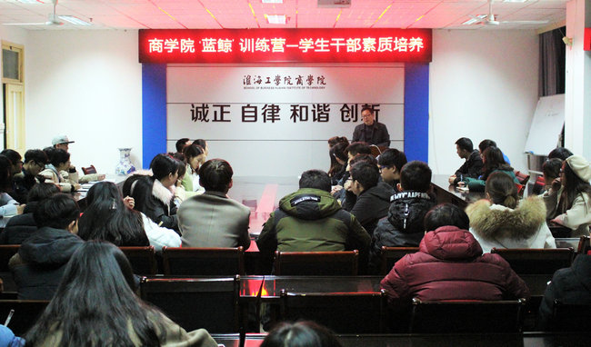 为进一步提升商学院学生干部的综合素质,增强学生干部的责任、奉献和拼搏意识,积极响应学校全力建成江苏海洋大学的号召,12月4日,商学院于主楼606举办了第一期“蓝鲸”训练营。此次训练营的主题是学生干部素质培养,邀请了商学院党委副书记张振松、辅导员苏成兄、校团委学生副书记王万春、原校学生会主席陈星宇做报告。