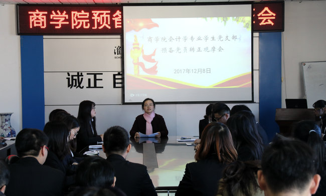 12月8日下午14:30,商学院党委在主楼606会议室举办了会计学专业学生党支部预备党员转正支部大会观摩会。会计学专业学生党支部书记徐建芬主持会议,商学院党委书记杨天华、党政办主任兰巍、学生党支部书记苏成兄、李淑华、娄婷婷、叶舟、程雪,辅导员姬徐田子以及各学生党支部学生党员代表出席会议。