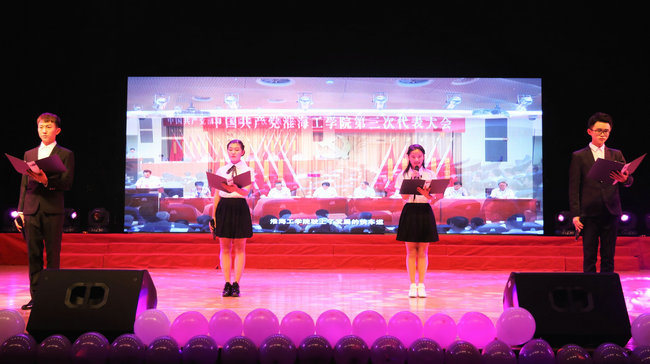 随着开场视频的播放,拼搏奋进的梦想画卷伴随着悠扬的音乐缓缓展开,老师们真挚的新年寄语宣告晚会正式开始。晚会共分“党辉照耀中国梦”、“齐心共筑海洋梦”、“携手共谱青春梦”三大篇章,集合歌舞、诗朗诵、情景短剧等多种表现形式。