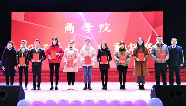 2017年是商学院不平凡的一年,在院党政领导的带领下,全院师生凝心聚力,取得了突出的成绩。晚会现场为在各大学科竞赛和文体活动中摘金夺银的商院学子颁发2017年度特殊贡献奖,沸腾的掌声汇聚着所有人的祝福与期望。宣昌勇院长致新年贺辞,对师生送出了最真挚的新年祝福,并以毛主席的一首《冬云》激励同学们不畏艰险,奋力拼搏,继续为建设江苏海洋大学贡献新的力量。诗歌朗诵《心向淮海,春暖花开》、独唱《诉衷情》、劲舞《梦回心海》声情并茂的描绘了商院学子对淮海园的热爱。新的一年承载新的希望,新的一年书写新的篇章,商学院必将在新的一年实现新的发展和跨越!