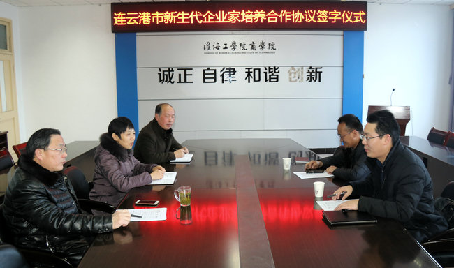 3月1日下午,商学院与团市委合作的“连云港市新生代企业家培养‘新动力’计划项目”协议签字仪式在商学院会议室举行。共青团连云港市委副书记王雷、团市委社工部部长常二华、商学院院长宣昌勇、书记杨天华、工商管理系主任徐永其教授、党政办主任兰巍参加了签字仪式。