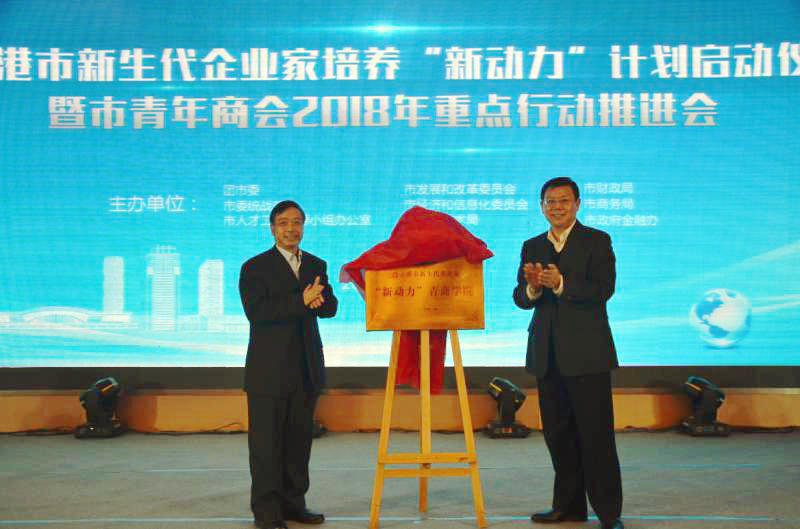 2018年1月20日,我市为推进“新动力”计划,成立连云港“新动力”青商学院,青商学院设立在我校商学院,副校长许兴友和市委常委、组织部长胡建军共同为青商学院成立揭牌。