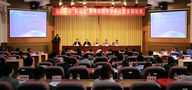 为贯彻落实学校全面推进江苏海洋大学创建要求,服务地方经济,商学院立足弘扬新生代企业家朝气蓬勃的创新精神,为连云港市“高质发展 后发先至”打造优秀企业家后备梯队,3月30日上午,与团市委、市人才办在文博楼报告厅联合举办了市“新动力”青商学院开学典礼。团市委书记曹明丽、市委组织部人才处处长齐庆磊、商学院党委书记杨天华、院长宣昌勇、团市委副书记王雷,以及来自各县区90余名新生代青年企业家出席参加了本次活动。