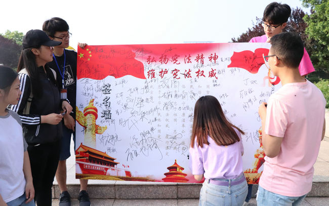 仪式最后,全体学生在诚信考试承诺板、国家宪法宣传板上积极踊跃签字,表达自己诚信迎考,自觉学法守法的决心。