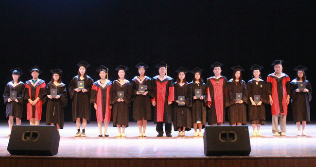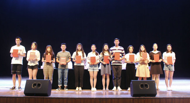 典礼在庄严的国歌声中开幕,商学院副院长蒋智凯宣布了授予学士学位名单,党委书记杨天华宣布了表彰优秀毕业生的决定。39名优秀毕业生获得者依次上台接受表彰。