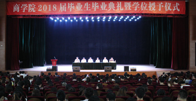 6月22日下午三时,商学院2018届毕业生典礼暨学位授予仪式在苍梧校区大礼堂隆重举行。商学院党委书记杨天华、院长宣昌勇、副院长张瑞龙、副院长蒋智凯、院长助理孙军以及商学院全体系主任、全体毕业班班主任和全体辅导员等共同见证了这一重要时刻。本次毕业典礼由商学院党委副书记王智金主持。
