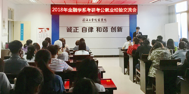 2018年5月23日下午6时30分,由金融协会主办的淮海工学院商学院金融系考研考公银行从业交流会在苍梧校区主楼606商学院会议室成功召开。参加此次交流会嘉宾的有金融系主任韩曙平老师、金融系辅导员程雪老师、金融系陈俊义老师、李平老师、黄萍老师。同时邀请了一四届成功考上研究生的全体同学、成功考上公务员及银行的学生代表共12人参加会议。本次交流会由主持人贺磊主持。