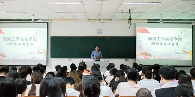 为加强征兵政策宣传,做好2018年大学生应征入伍工作,5月16日下午4时30分,商学院于至善楼105召开2018年征兵宣传动员大会,商学院党委副书记王智金,学工办主任徐建芬,团委副书记李淑华,辅导员叶舟、娄婷婷、程雪、姬徐田子,商学院大一各专业代表出席本次动员大会。