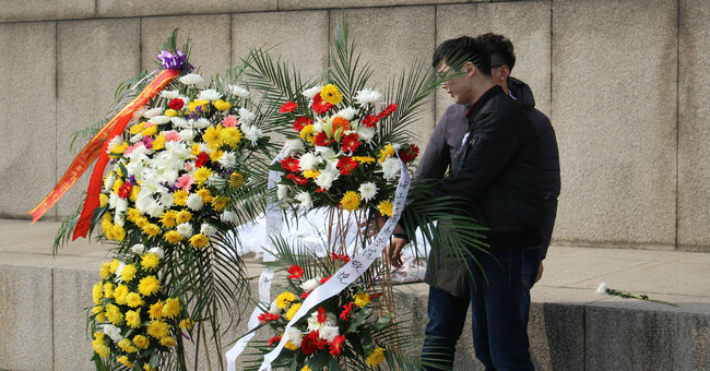 上午10时,在张振松副书记的带领下党员们进入淮海战役烈士纪念塔园林,随后祭奠活动正式开始。在烈士纪念碑前,全体党员面向纪念碑三鞠躬,深切缅怀革命先辈们的丰功伟绩,并在纪念碑前默哀三分钟,以此表达对先烈的崇敬和哀思。默哀完毕后,党员同志们怀着深深敬意向革命烈士墓敬献鲜花,接着全体党员紧握右拳向党旗庄严宣誓,重温了入党誓词。随后,学生党员代表邵秀琴同学进行了发言,她表示我们今天的美好生活是先烈们用鲜血和生命换来的,并在今后的学习工作中要从自己做起,发扬不畏艰难、吃苦耐劳的精神,增强责任感、使命感,发挥党员的先锋模范作用。最后,张振松副书记进行了总结讲话,他要求同学们不要忘记历史,不要忘记为民族解放献出生命的英雄,要在生活和学习中深入反思自己,不断的发现自身问题,在“两学一做”活动中走在前列,坚定理想信念,同时他表示我们全体师生要共同努力,端正态度,以实际行动积极投入到江苏海洋大学的建设当中。