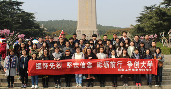2017年3月25日,为了缅怀革命英烈的英雄事迹,继承先烈遗志,加深党员对中华民族革命历史及伟大民族精神的了解和领悟,进一步坚定理想信念,商学院组织教职工党员、学生党员代表赴江苏徐州淮海战役烈士纪念塔园林开展了“缅怀先烈,坚定信念,砥砺前行,争创大学”主题党日活动。