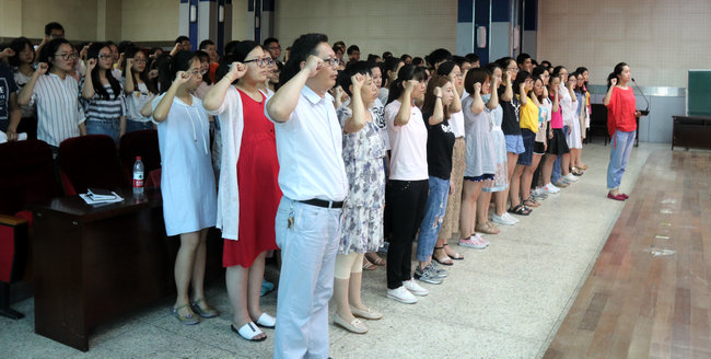 最后商学院师生党员在程雪老师带领下,郑重举起右拳,面对党旗,新党员入党宣誓,老党员重温入党誓词。